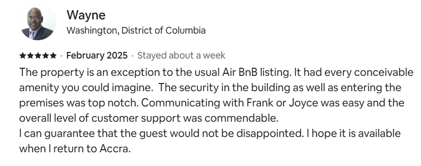 Serenity Haven is a stylish 2 BR apartment tucked inside the gated serene Alphabet City Estate, 25 minutes from the Airport, 15 minutes to the beach and 10 mins to Junction Mall for your essentials. Whether you’re visiting Accra for family time, a special celebration, work, or a well-deserved break, this is your home away from home — thoughtfully designed so you can relax, explore, and truly enjoy Ghana.