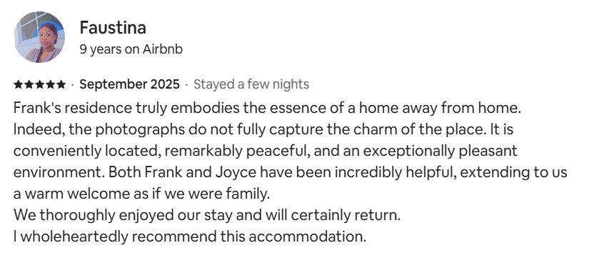 Serenity Haven is proudly recognized by Airbnb as a Superhost and a Guest favorite - a reflection of our consistent commitment to exceptional hospitality.